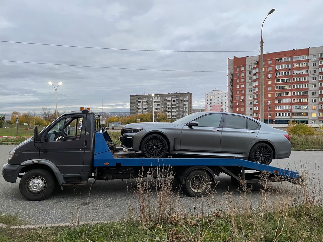 Машину, БМВ «Тройку», быстро эвакуировали — примерно за пятнадцать-двадцать минут. Водитель мне понравился, он был веселым, жизнерадостным и позитивным молодым парнем. Он полностью загрузил, довез до сервиса и разгрузил автомобиль, а затем уехал.